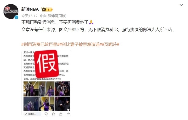 深信看完这段话,绝大部分球迷不仅不会深信其真正性,而且还会合计此音问太乖谬好笑了,但由于是相干到科比遗孀瓦妮莎,是以“瓦妮莎”的名字很快就冲上了外交媒体热搜榜的第一位,于是很快真相来了,这尽然是一则重新至尾的假音问!